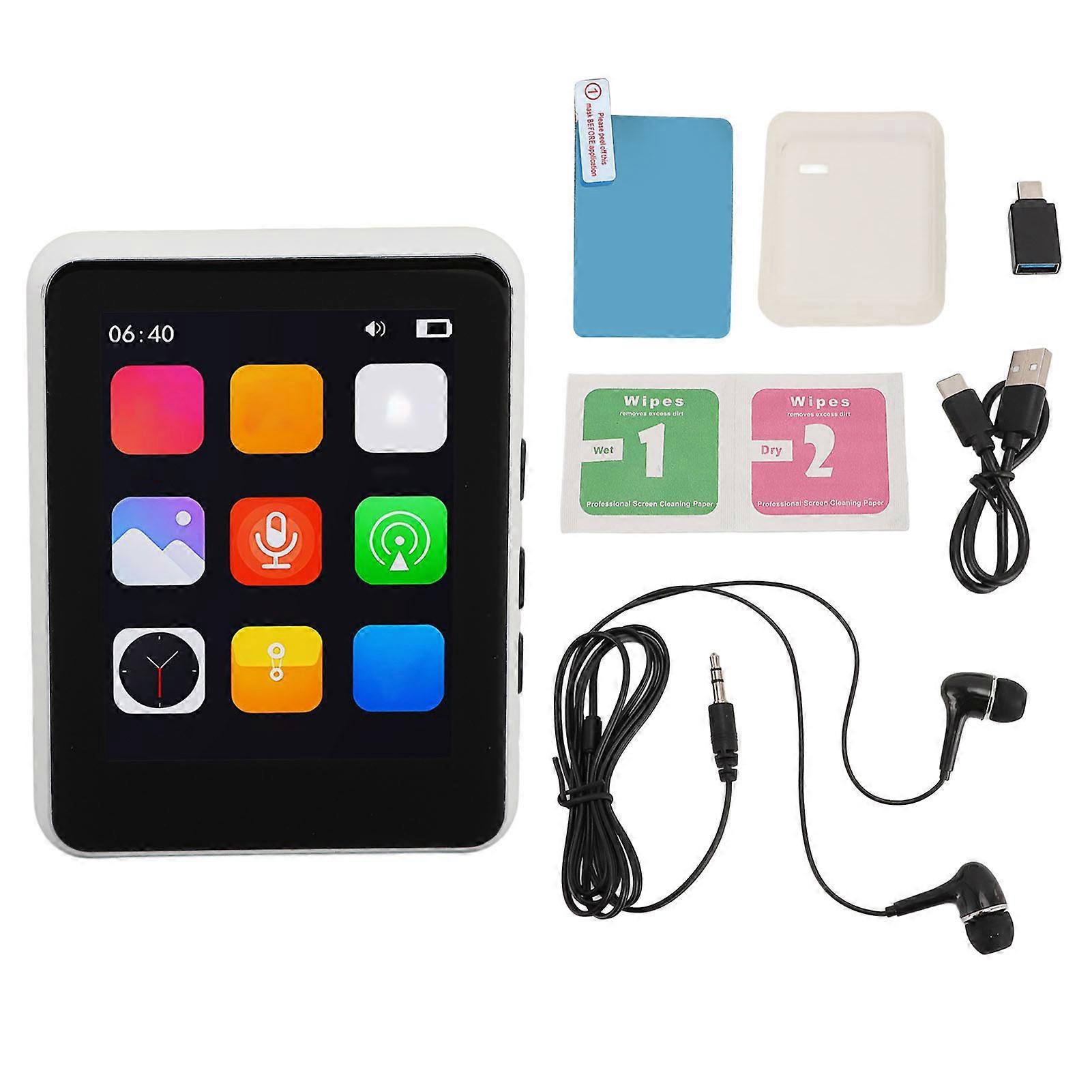 MP3 Player with Speaker Headphone 64GB 2.4in Touch Screen Portable HiFi FM Receiving Voice Recording EBook White